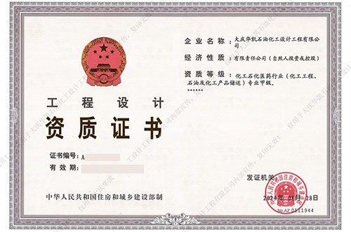 8月28日,經(jīng)住房和城鄉建設部核準,我司石油及化工產(chǎn)品儲運資質(zhì)成功晉升甲級。*此,我司已擁有化工石化醫藥行業(yè)化工工程甲級、化工及產(chǎn)品儲運雙項甲級設計資質(zhì);同時(shí)我司還擁有石油天然氣(海洋石油)行業(yè)管道輸送、油田地面;化工石化醫藥行業(yè)煉油工程、市政行業(yè)城鎮燃氣工程、建筑行業(yè)建筑工程乙級資質(zhì)。這既是對我...